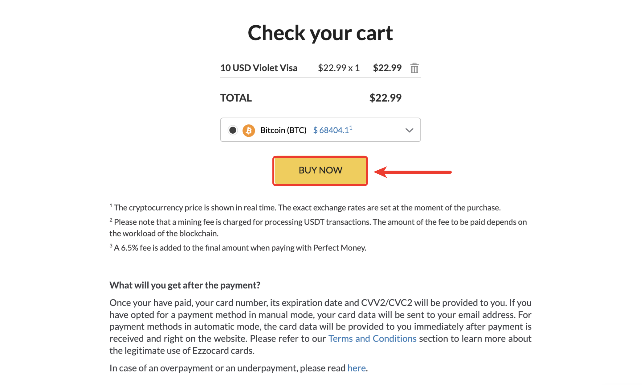 Check your cart to verify if everything is correct and click the 'BUY NOW' button to be redirected to the page of your order.